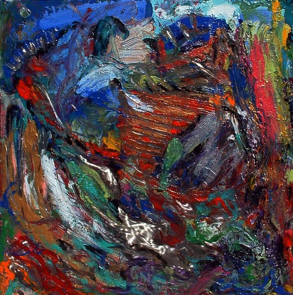 Acrylic on stretched canvas 22" x 14" x 2". I was watching the tragedy of the Great Hanshin earthquake in Kobe, Japan, January 1995, and felt deep compassion for the toll of human life and property lost. Kobe once won a prize in an art show and hung in the Texas State Capitol. A top neurosurgeon later accepted this painting as payment for surgery required to repair a fragmented disc in my back. SOLD